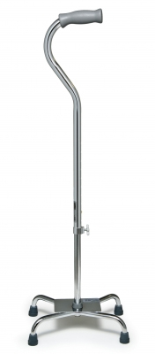 Lumex Silver Collection Low Profile Quad Cane, Aluminum, Standard Grip, Small Base (8″ x 6″) * Offset handle places the user?s weight over the base for maximum balance and control * Low profile, 4-point base further enhances stability * Rounded edge base plate helps prevent scraping and bruising of ankles * Attractive finish resists marring and scratching * Easy push-button height adjustment with locking collet for added security * Height adjusts from 29″ – 38″ in 1″ increments * Tool-free left- to right-hand adjustment is made easily