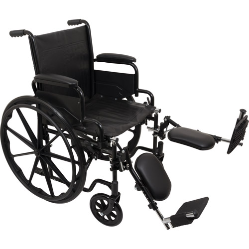 Combines style and durability at an affordable price * Standard features include flip back removable padded armrests, easy-to-clean vinyl upholstery, chart pocket and elevating padded legrests with composite footplates * Supporting patient weights up to 250 pounds, the ProBasics K1 Standard Wheelchair is a popular choice among providers * Slide tube steel frame in black powder coat finish * Single axle positioning * Easy-to-clean, comfortable vinyl upholstery resists mildew and bacteria * Flip-back, padded, upholstered armrests are removable * Chart pocket on back for additional convenience * Includes tool-free elevating padded legrests with composite footplates * Elevating legrests are equipped with a pneumatic piston for infinite elevating positions * Easy push-to-lock wheel locks * Composite handrims with 24″ solid urethane tires * 8″ x 1″ solid rubber front casters * Precision sealed wheel bearings in front and rear ensure long lasting performance and reliability * HCPCS Code: K0001,K0195 OR E0990 (elevating legrests only) *