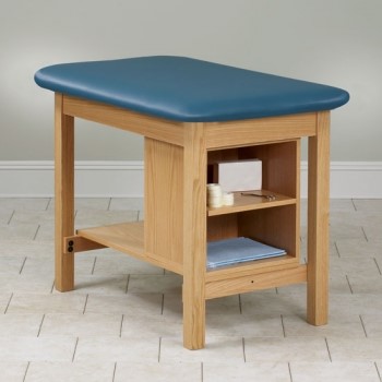 Heavy duty taping table with solid wood legs, H-braces and laminated 2 level storage compartments and shelf * 2″ foam padding * 350 lbs. load capacity under normal use * 5 year limited warranty